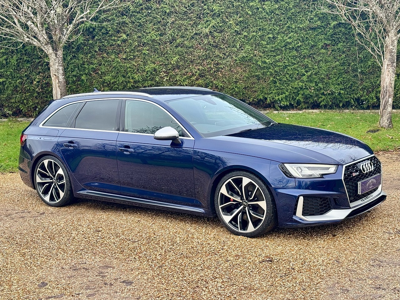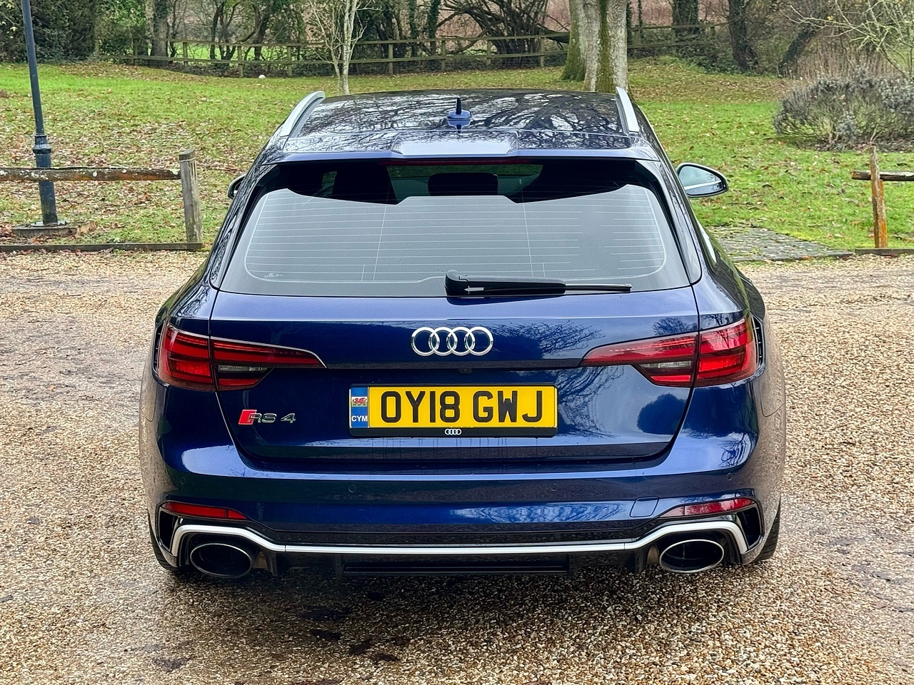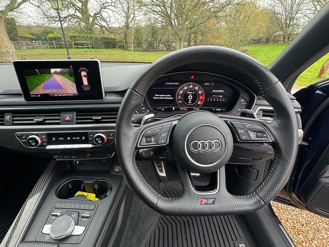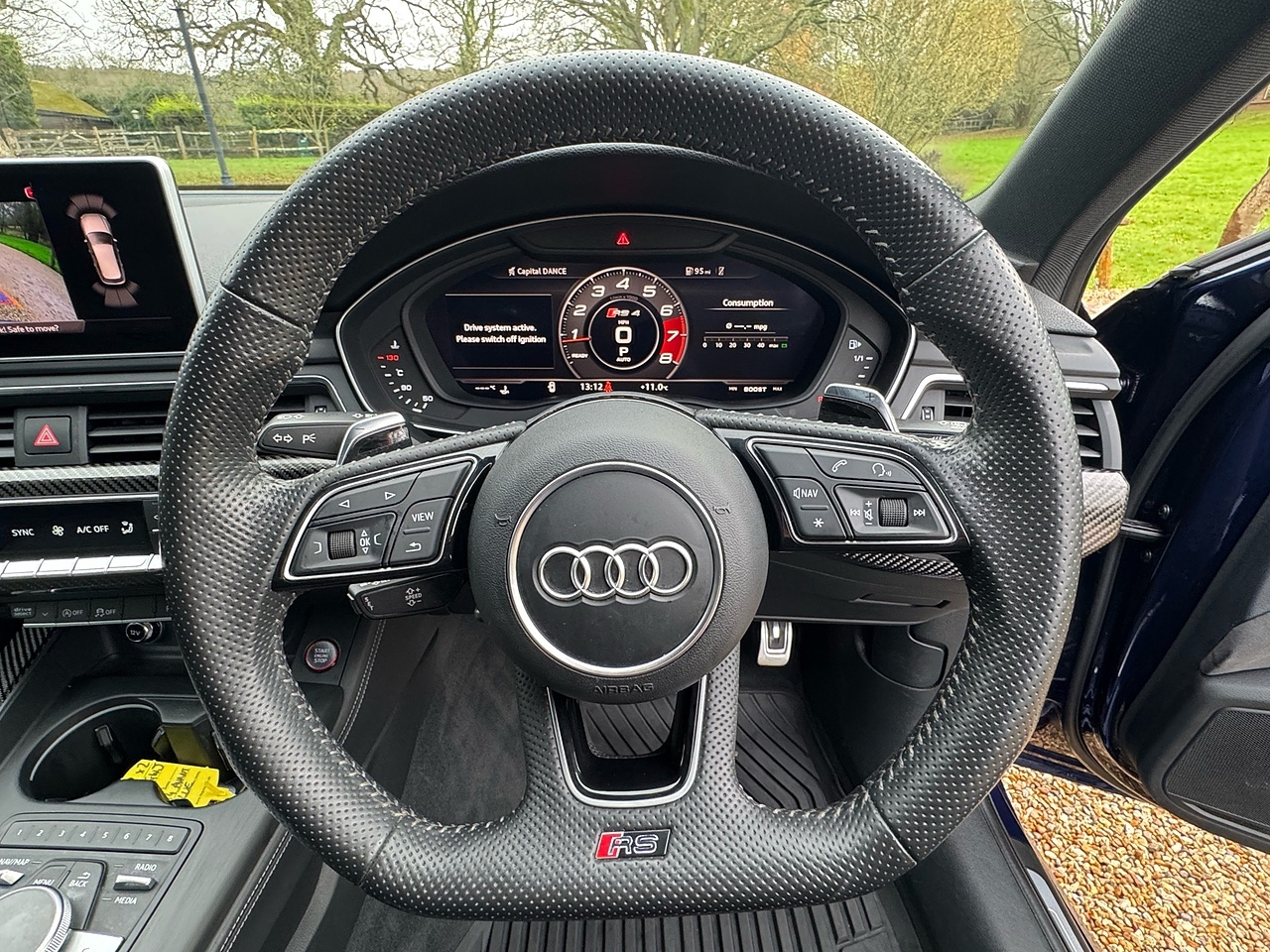 This 2018 Audi RS4 Avant TFSI V6 boasts exceptionally low mileage for its age, having covered just 46873 miles, and benefits from an MOT valid until August 2026. This powerful estate car features a 2.9 litre petrol engine and a four wheel drive drivetrain, meeting Euro 6 emission standards. Notable features include Audi Side Assist with Blind Spot Assistance, a Light and Rain Sensor that automatically activates the headlights, and Deluxe 3-Zone Climate Control for personalised comfort. The striking LED headlights are complemented by LED rear lights and dynamic rear indicators, enhancing both visibility and the car's sophisticated appearance.