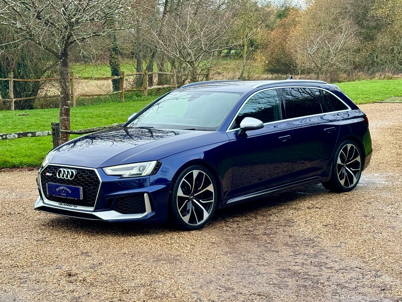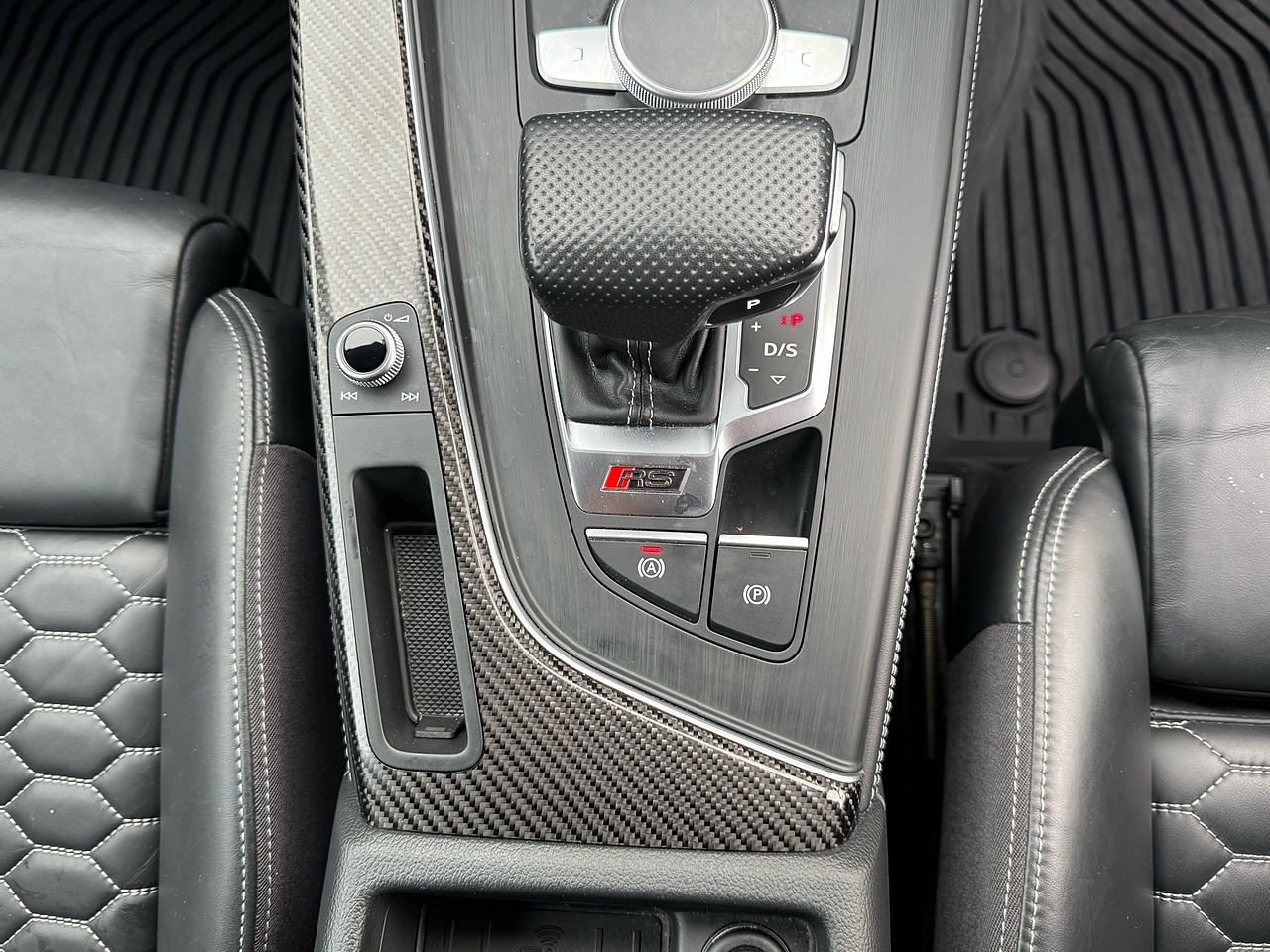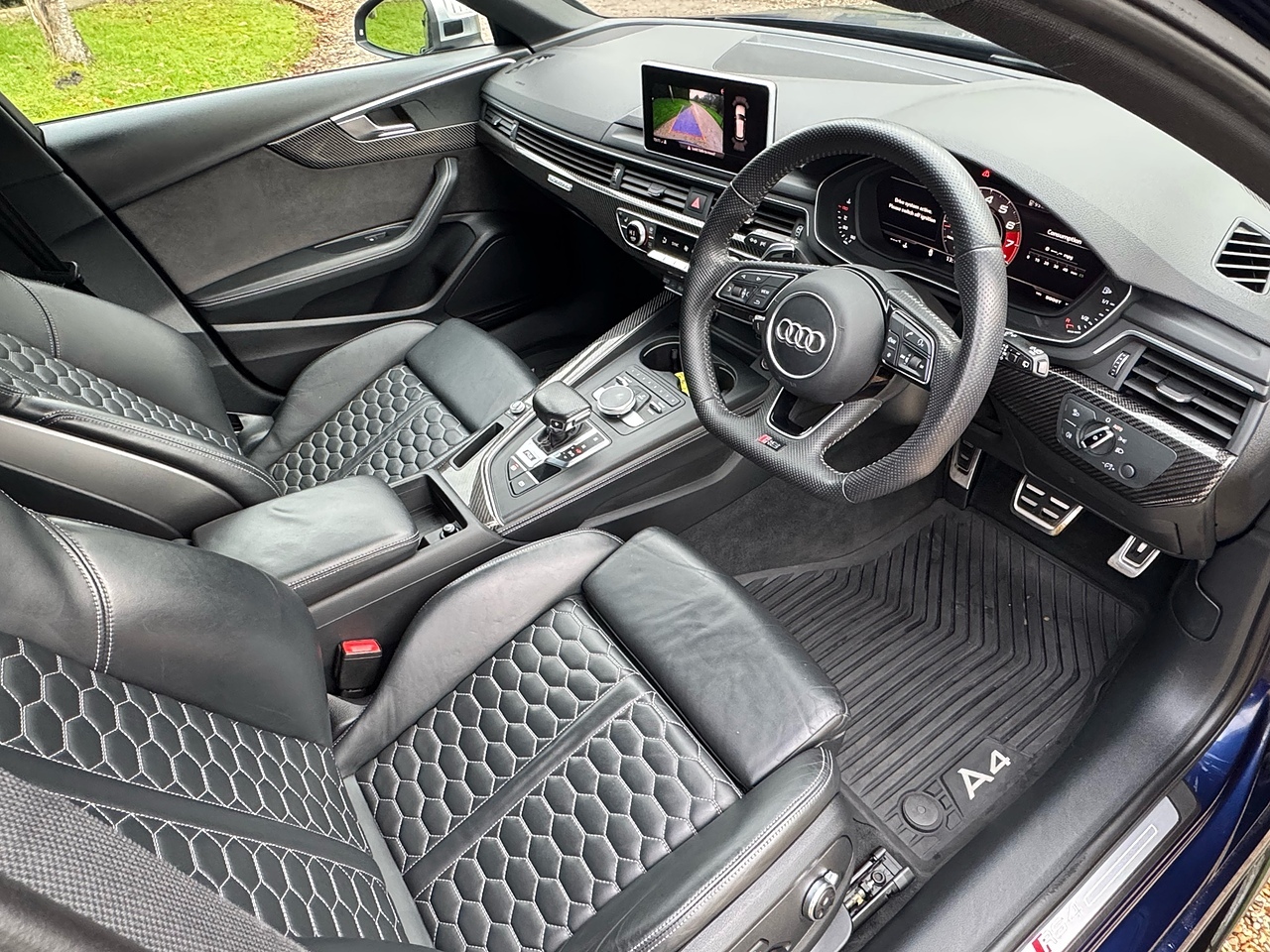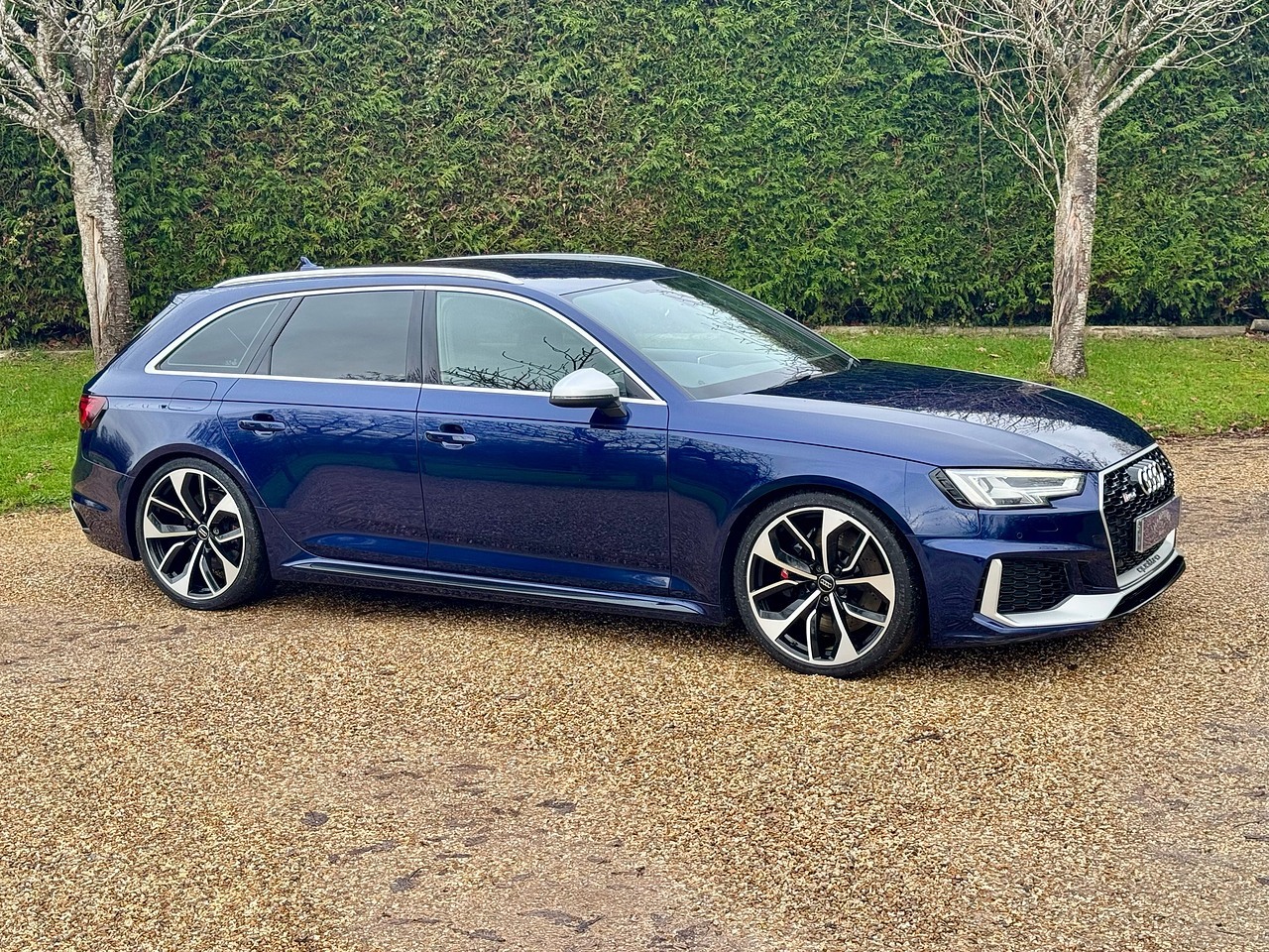 This 2018 Audi RS4 Avant TFSI V6 boasts exceptionally low mileage for its age, having covered just 46873 miles, and benefits from an MOT valid until August 2026. This powerful estate car features a 2.9 litre petrol engine and a four wheel drive drivetrain, meeting Euro 6 emission standards. Notable features include Audi Side Assist with Blind Spot Assistance, a Light and Rain Sensor that automatically activates the headlights, and Deluxe 3-Zone Climate Control for personalised comfort. The striking LED headlights are complemented by LED rear lights and dynamic rear indicators, enhancing both visibility and the car's sophisticated appearance.