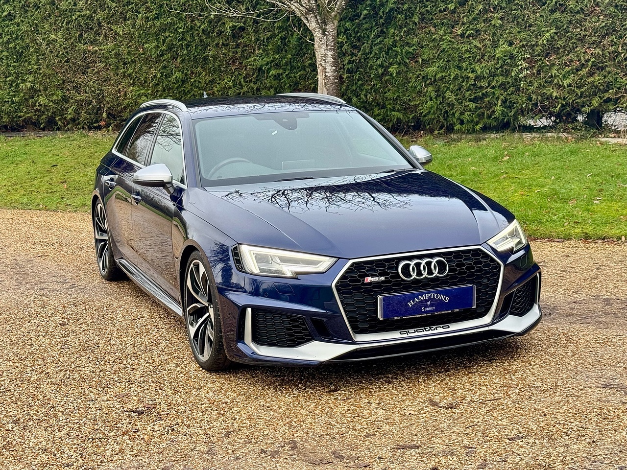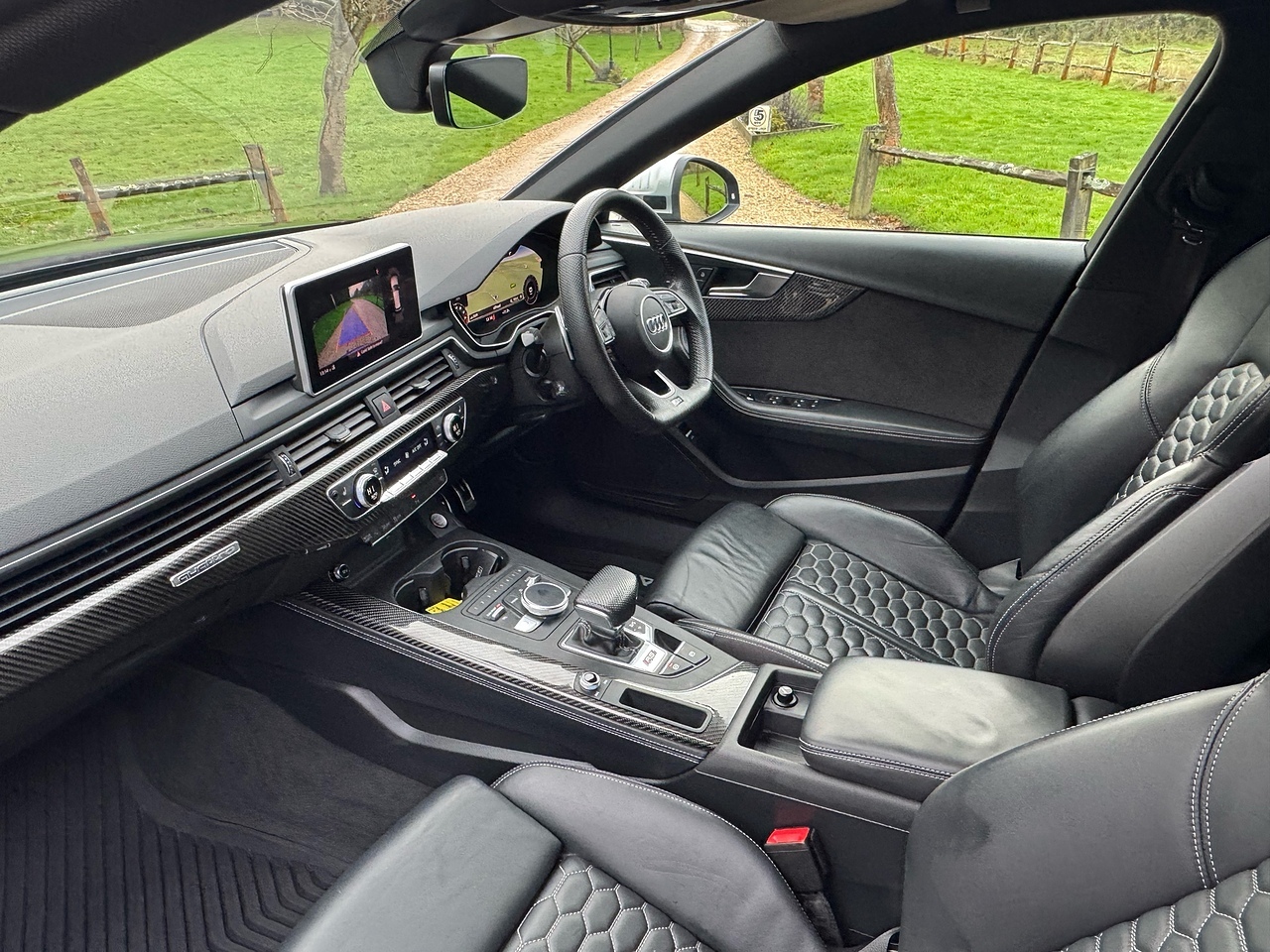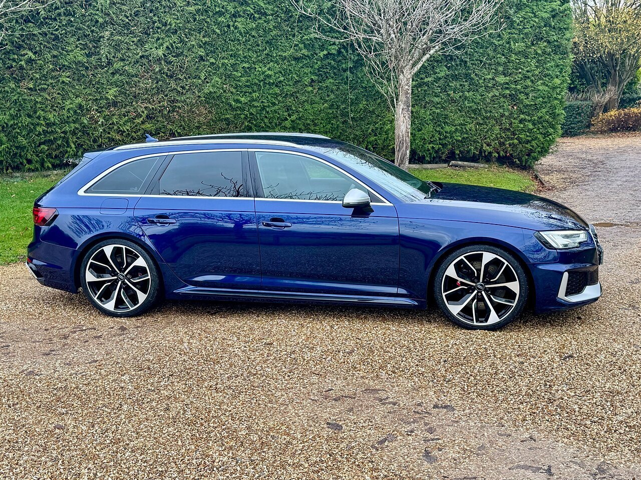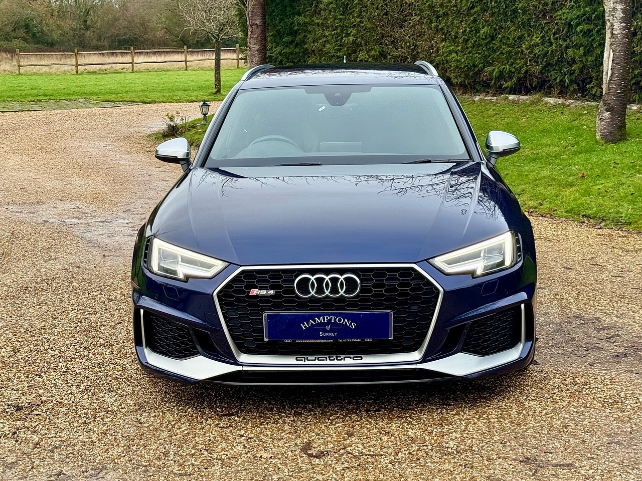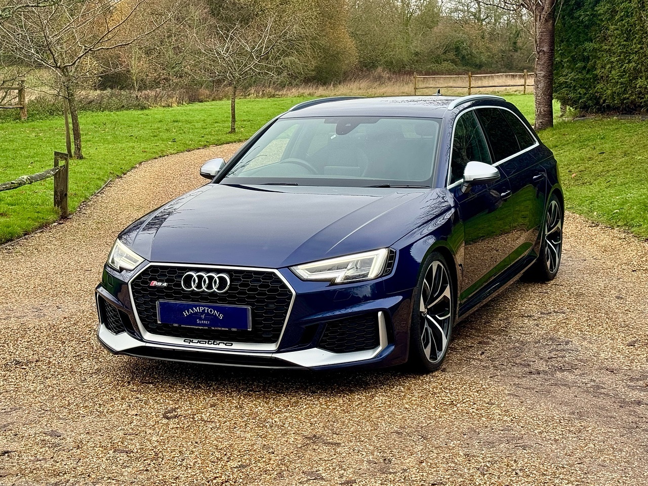This 2018 Audi RS4 Avant TFSI V6 boasts exceptionally low mileage for its age, having covered just 46873 miles, and benefits from an MOT valid until August 2026. This powerful estate car features a 2.9 litre petrol engine and a four wheel drive drivetrain, meeting Euro 6 emission standards. Notable features include Audi Side Assist with Blind Spot Assistance, a Light and Rain Sensor that automatically activates the headlights, and Deluxe 3-Zone Climate Control for personalised comfort. The striking LED headlights are complemented by LED rear lights and dynamic rear indicators, enhancing both visibility and the car's sophisticated appearance.