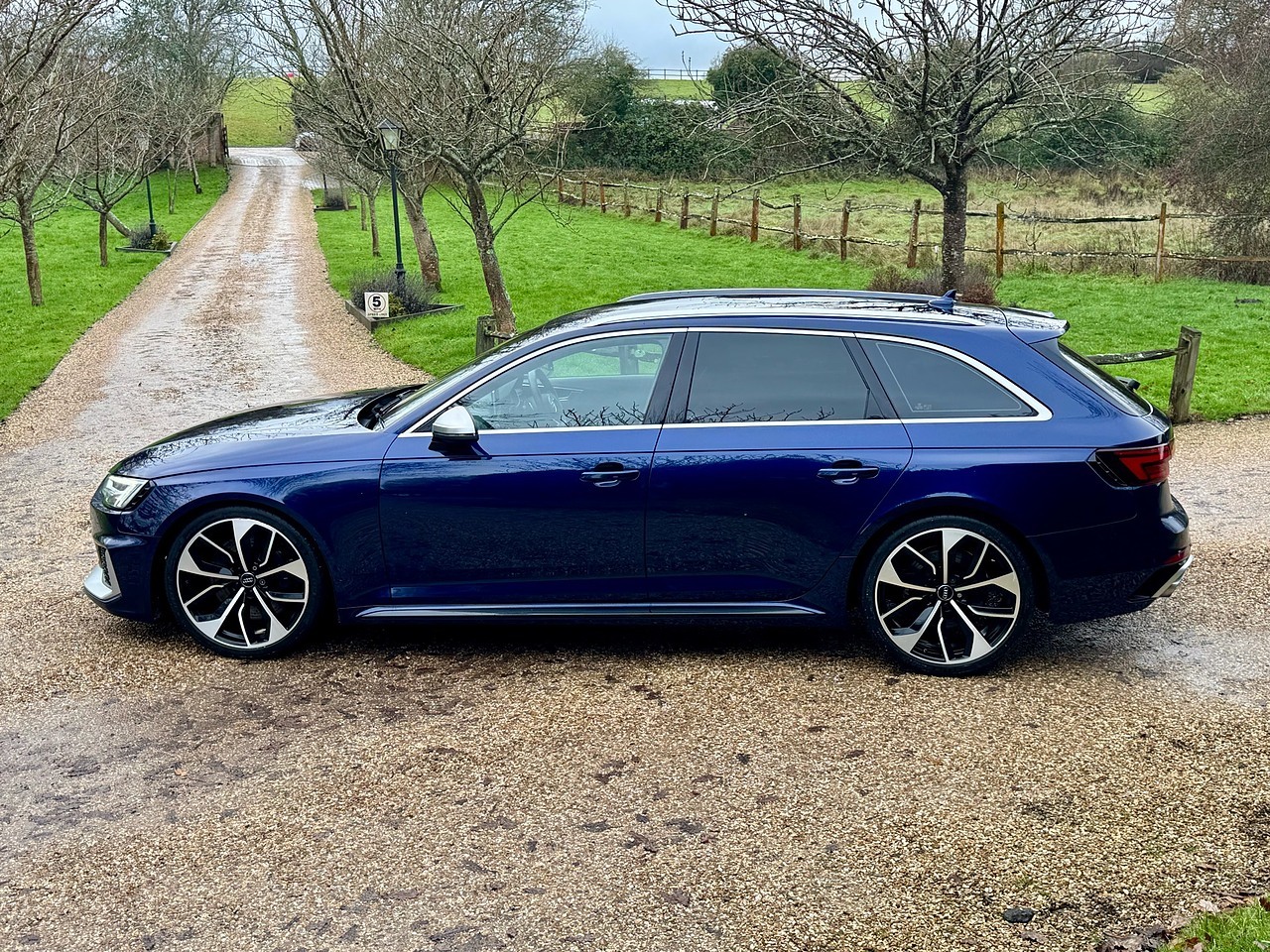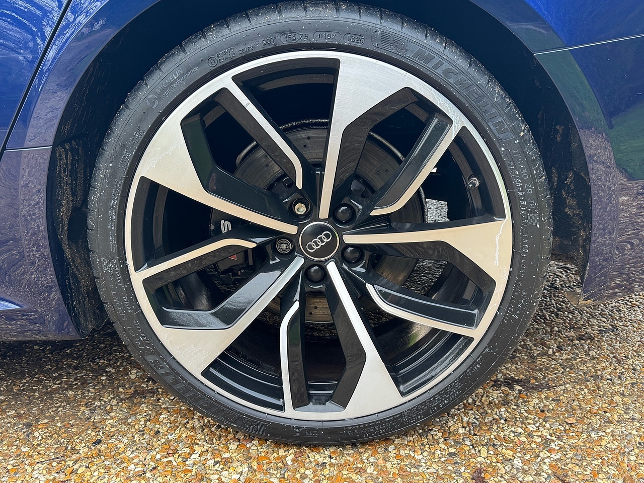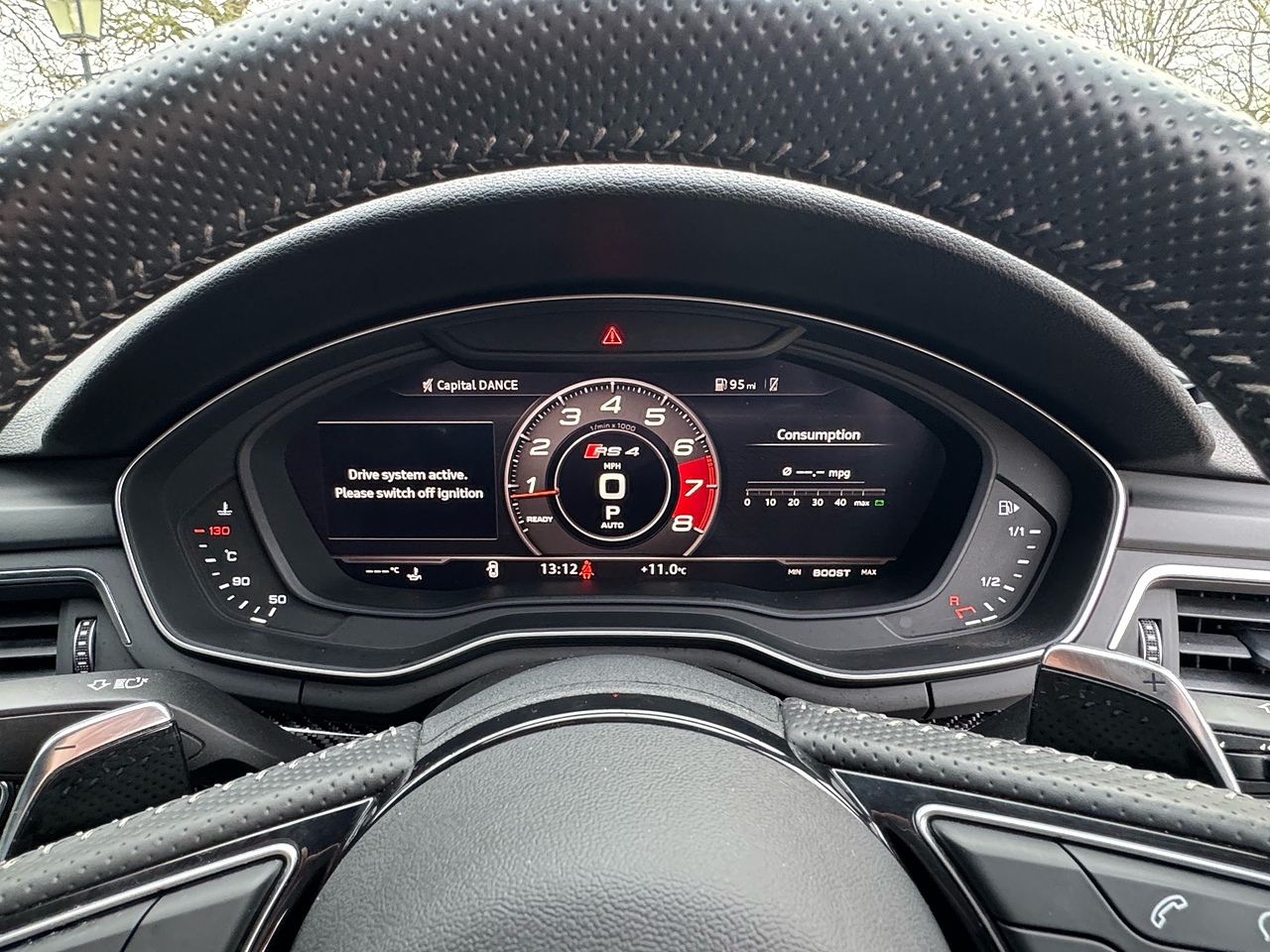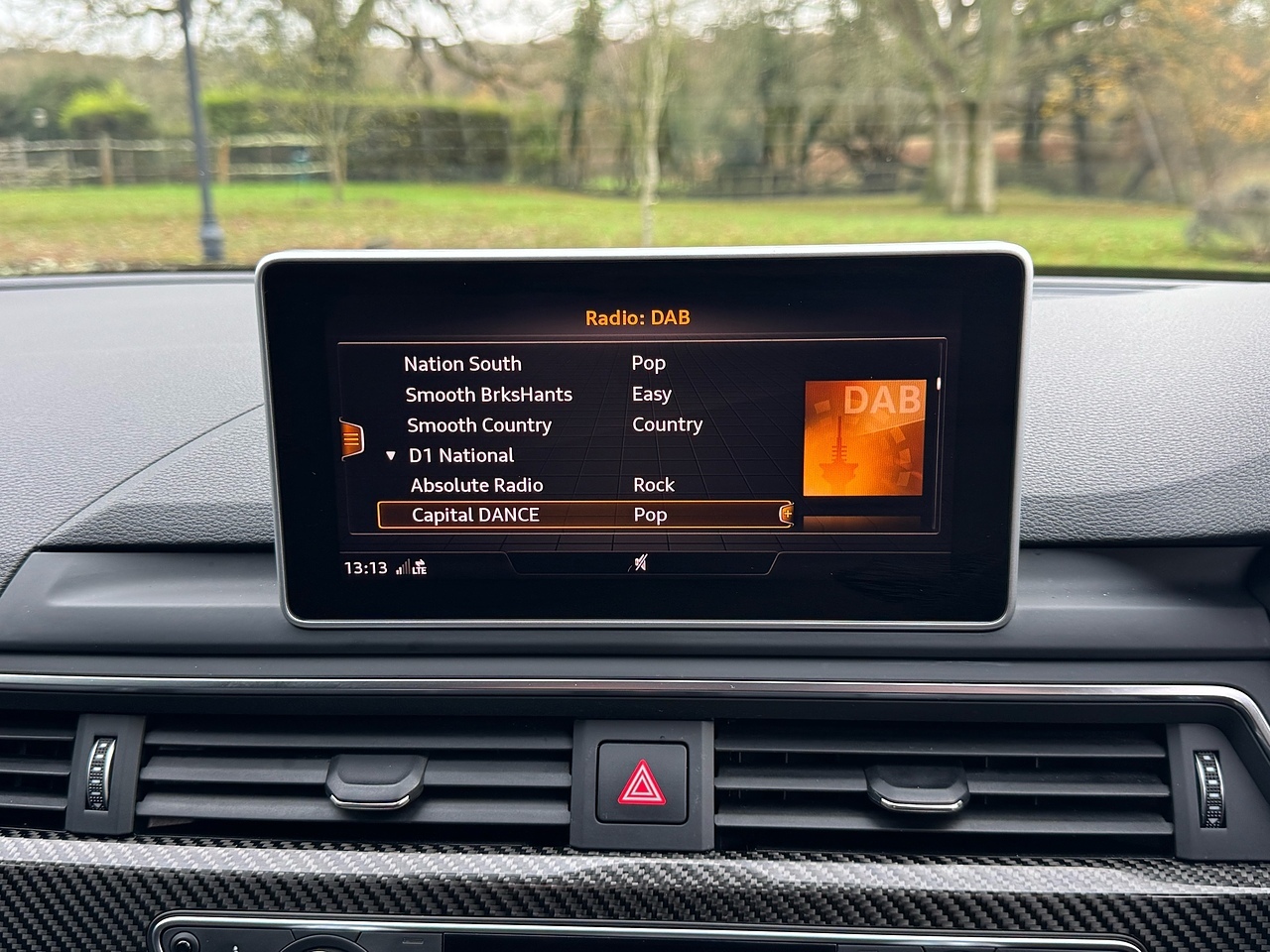 This 2018 Audi RS4 Avant TFSI V6 boasts exceptionally low mileage for its age, having covered just 46873 miles, and benefits from an MOT valid until August 2026. This powerful estate car features a 2.9 litre petrol engine and a four wheel drive drivetrain, meeting Euro 6 emission standards. Notable features include Audi Side Assist with Blind Spot Assistance, a Light and Rain Sensor that automatically activates the headlights, and Deluxe 3-Zone Climate Control for personalised comfort. The striking LED headlights are complemented by LED rear lights and dynamic rear indicators, enhancing both visibility and the car's sophisticated appearance.