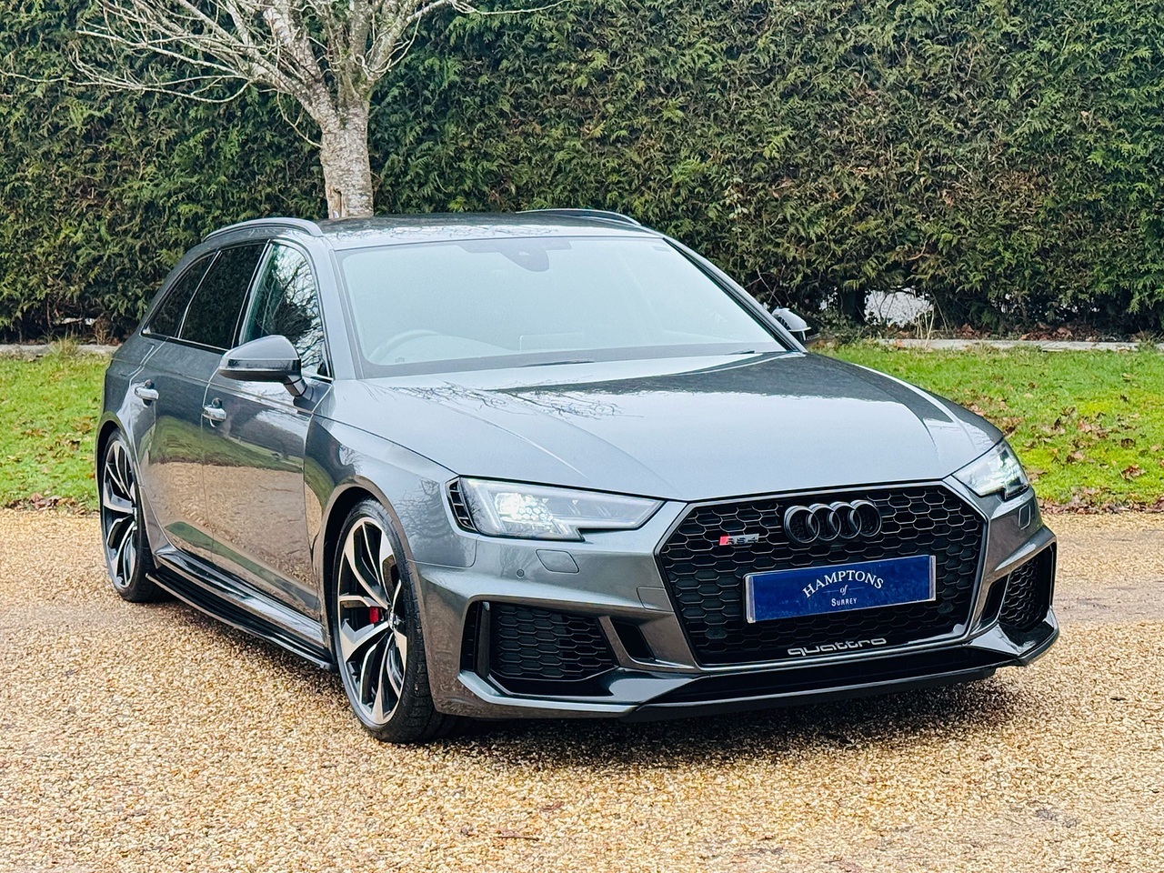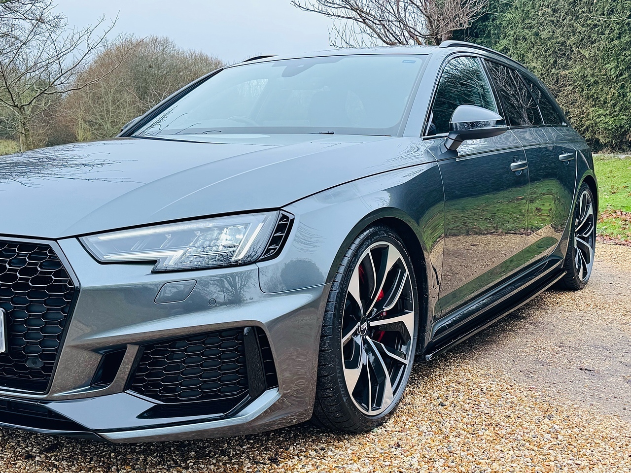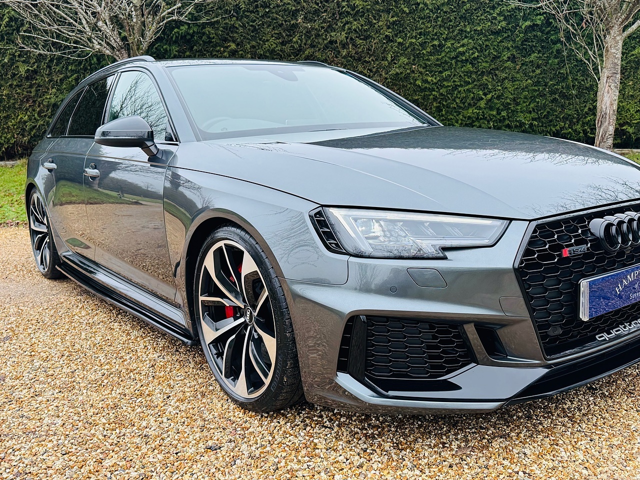 This 2019 Audi RS4 Avant TFSI V6 boasts a remarkably low mileage of just 39,500 miles, supported by a full Audi service history and a clear vehicle history check. The last service was completed on 26 November 2025 at 38,992 miles, ensuring excellent provenance for this Euro 6 compliant 2.9 litre petrol engine. This powerful four wheel drive model comes equipped with desirable features including RS Matrix LED headlights with dynamic front and rear indicators, a black styling pack, and 20 inch five twin spoke edge design alloy wheels in silver.