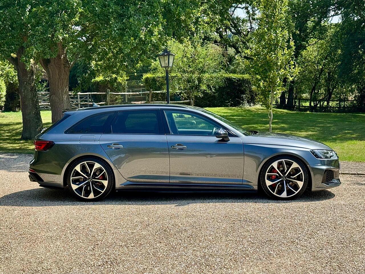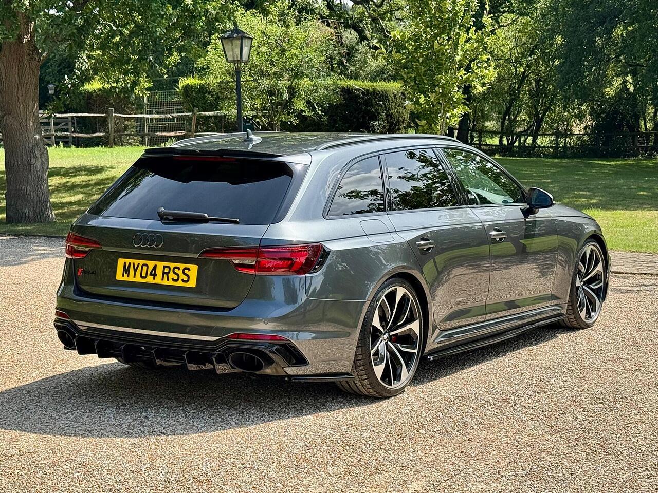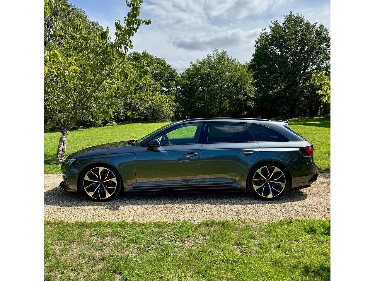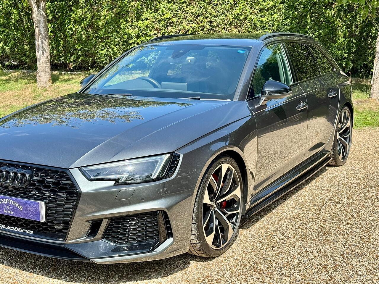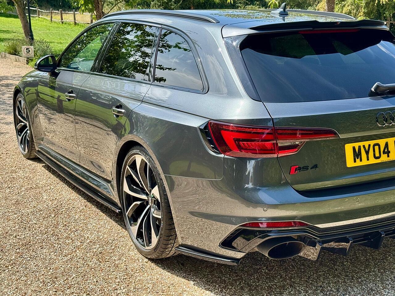With only 35000 miles on the clock, this 2019 Audi RS4 Avant is offered in superb condition. The RS4 Avant is a four-wheel drive estate car with a 2.9L petrol engine and is the TFSI V6 variant. This vehicle has a clear vehicle history check and meets Euro 6 emission standards. It comes equipped with RS Matrix LED headlights, LED rear lights, and dynamic front and rear indicators, including LED headlights. The black styling pack enhances its appearance, while the RS sport exhaust system adds to the driving experience.