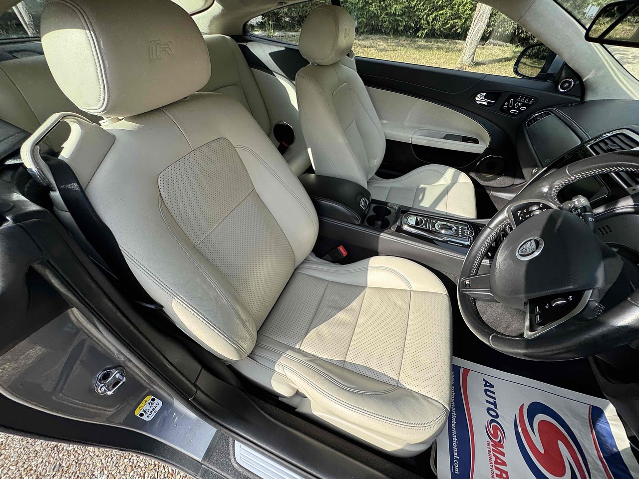 With only two previous owners, this 2012 Jaguar XKR V8 is a fine example of a performance vehicle. The XKR boasts a 5.0L petrol engine and comes with an MOT valid until January 2026, and a clear vehicle history check, offering peace of mind. The interior is equipped with Performance 16x16 Way Electric seats, finished in Performance Soft Grain Leather in Ivory, creating a comfortable and refined driving environment. The Piano Black veneer adds a touch of sophistication to the cabin, while the DAB digital radio provides a wide range of entertainment options. The Dual Zone Automatic Climate Control, including climate control, ensures optimal comfort for both the driver and passengers.