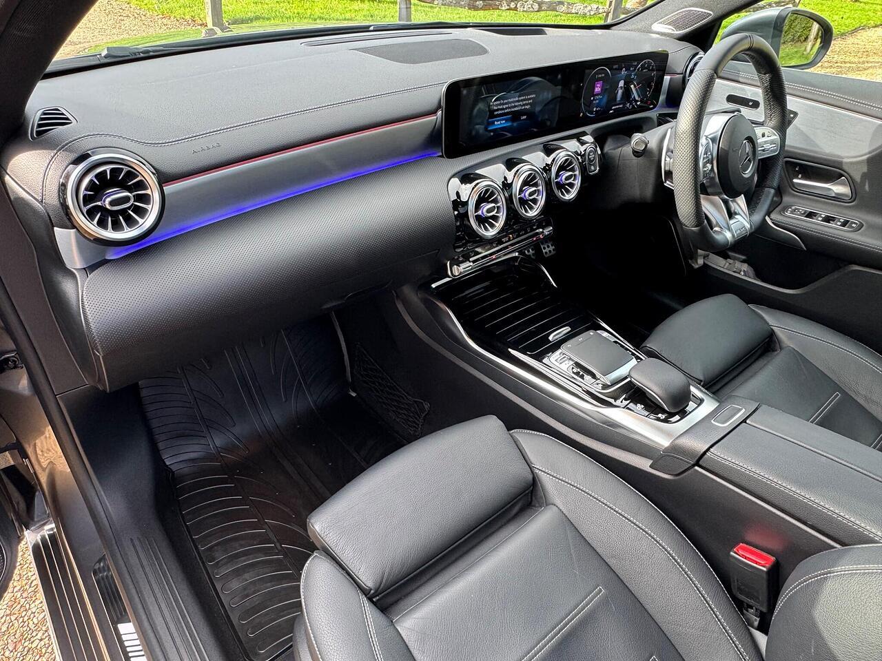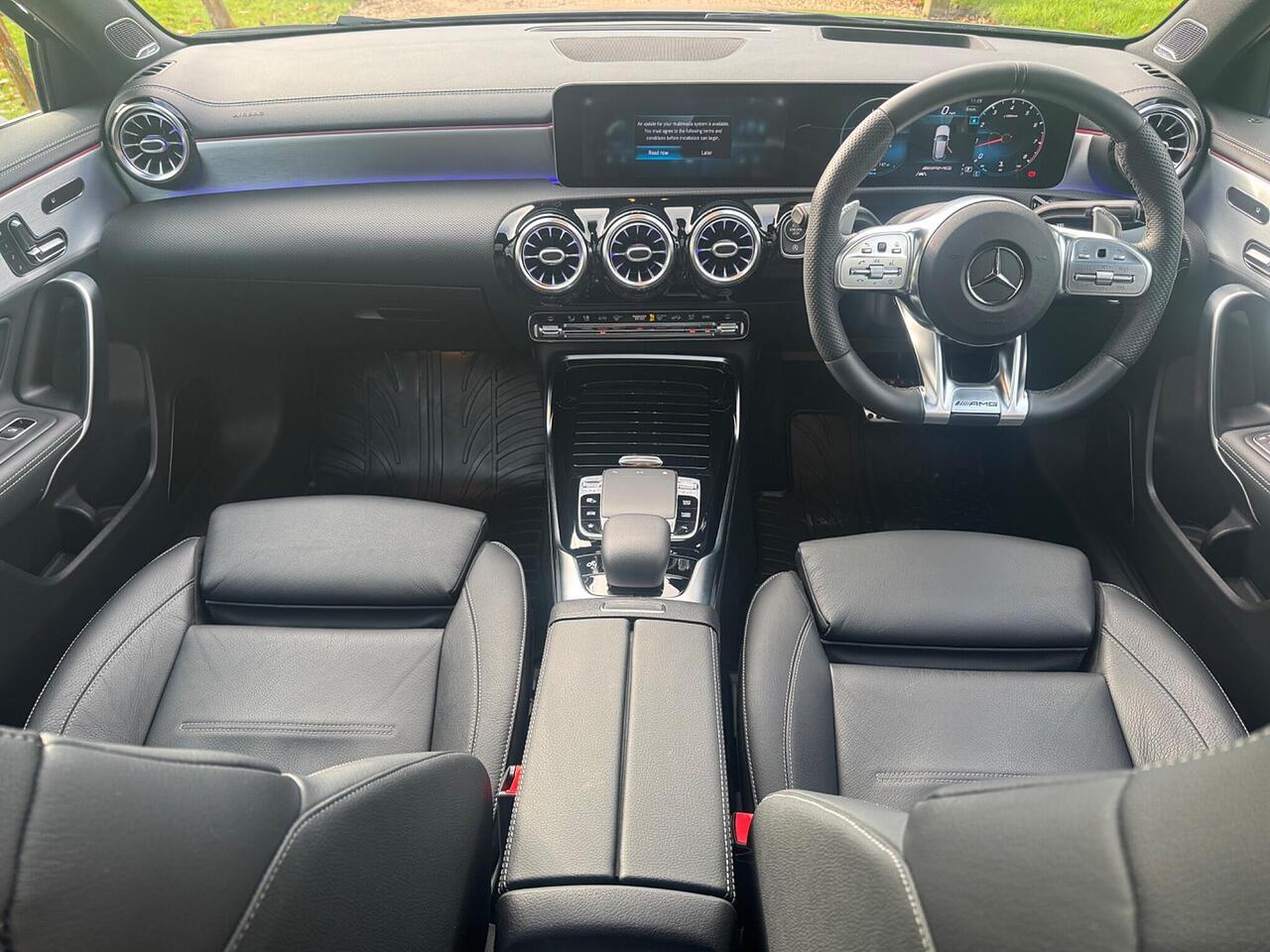 Boasting exceptionally low mileage for its age, this 2019 Mercedes Benz A Class A35 AMG Premium Plus is a remarkable find. This Euro 6 compliant model features a potent 2.0L petrol engine paired with a four wheel drive system, ensuring confident performance in all conditions. With an MOT valid until October 2026 and a clear vehicle history check, you can be assured of its excellent provenance. The Premium Plus Package enhances the driving experience with a branded sound system, LED high performance headlamps with integrated daytime running lights, keyless entry, and a panoramic opening sunroof.