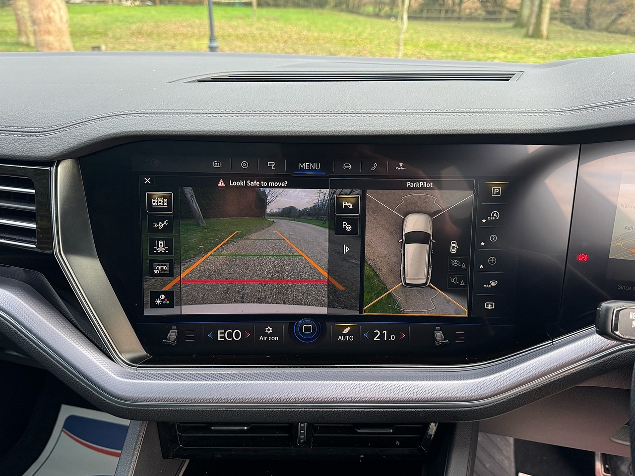 This 2022 Volkswagen Touareg TSI V6 Black Edition boasts a clear vehicle history and has had only one owner, offering peace of mind. This impressive SUV features a powerful 3.0 litre petrol engine paired with four wheel drive, ensuring capability in various conditions. It meets Euro 6 emission standards and is equipped with a substantial towing weight of 3500 kg. Notable features include the Ambient Light Pack for R Line, a Tyre Pressure Monitoring System, a Memory Pack for seats and mirrors, Laminated Safety Privacy Glass, and Keyless Entry for ultimate convenience.